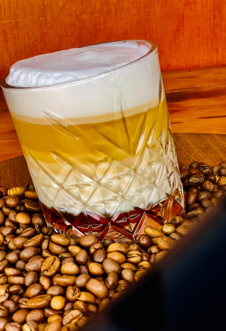 سیروپ کارامل . قهوه. فوم شیر