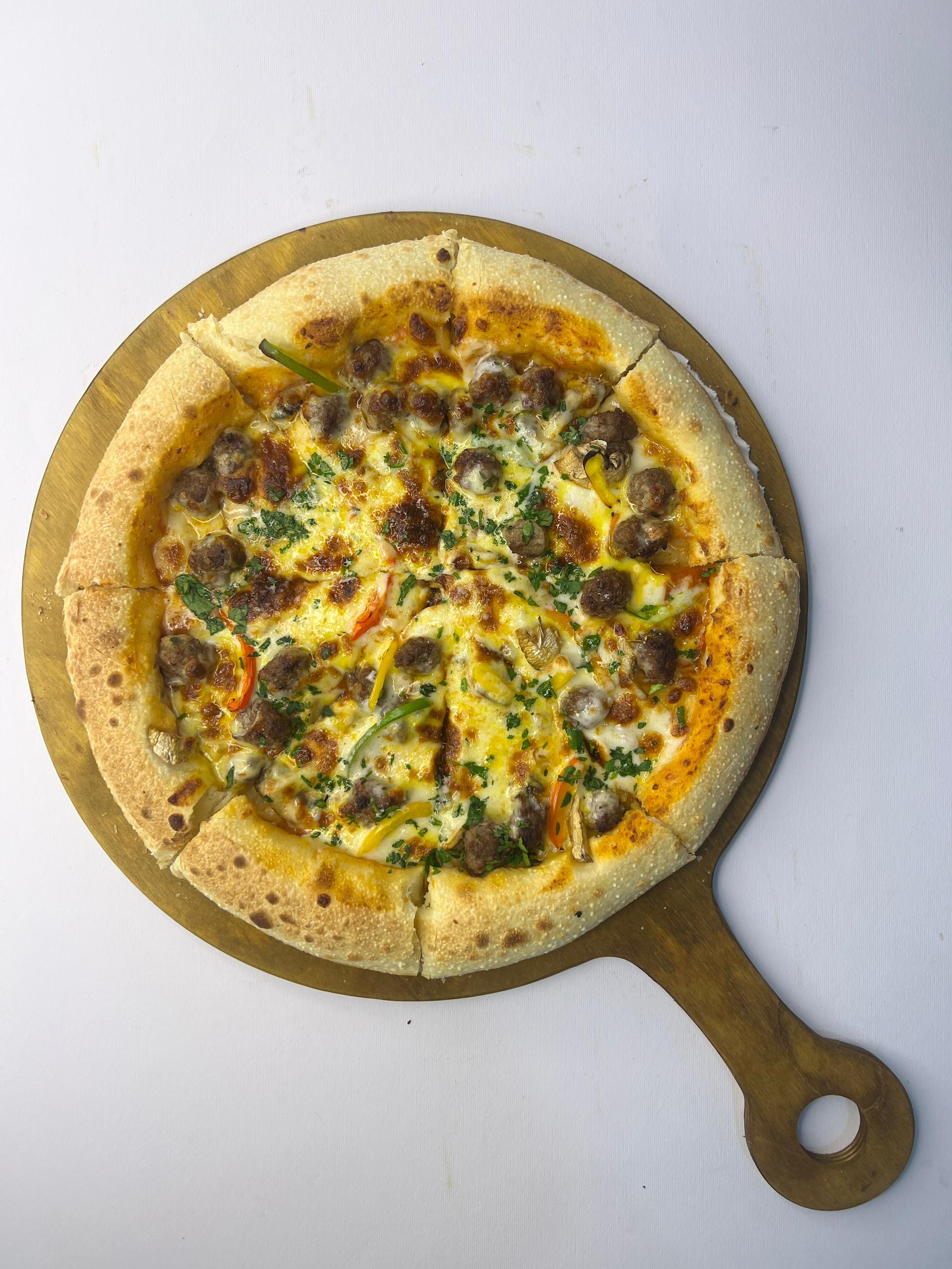 خمیرناپولیتن.سوجوک.رست بیف.بیکن گوساله.فلفل دلمه.قارچ