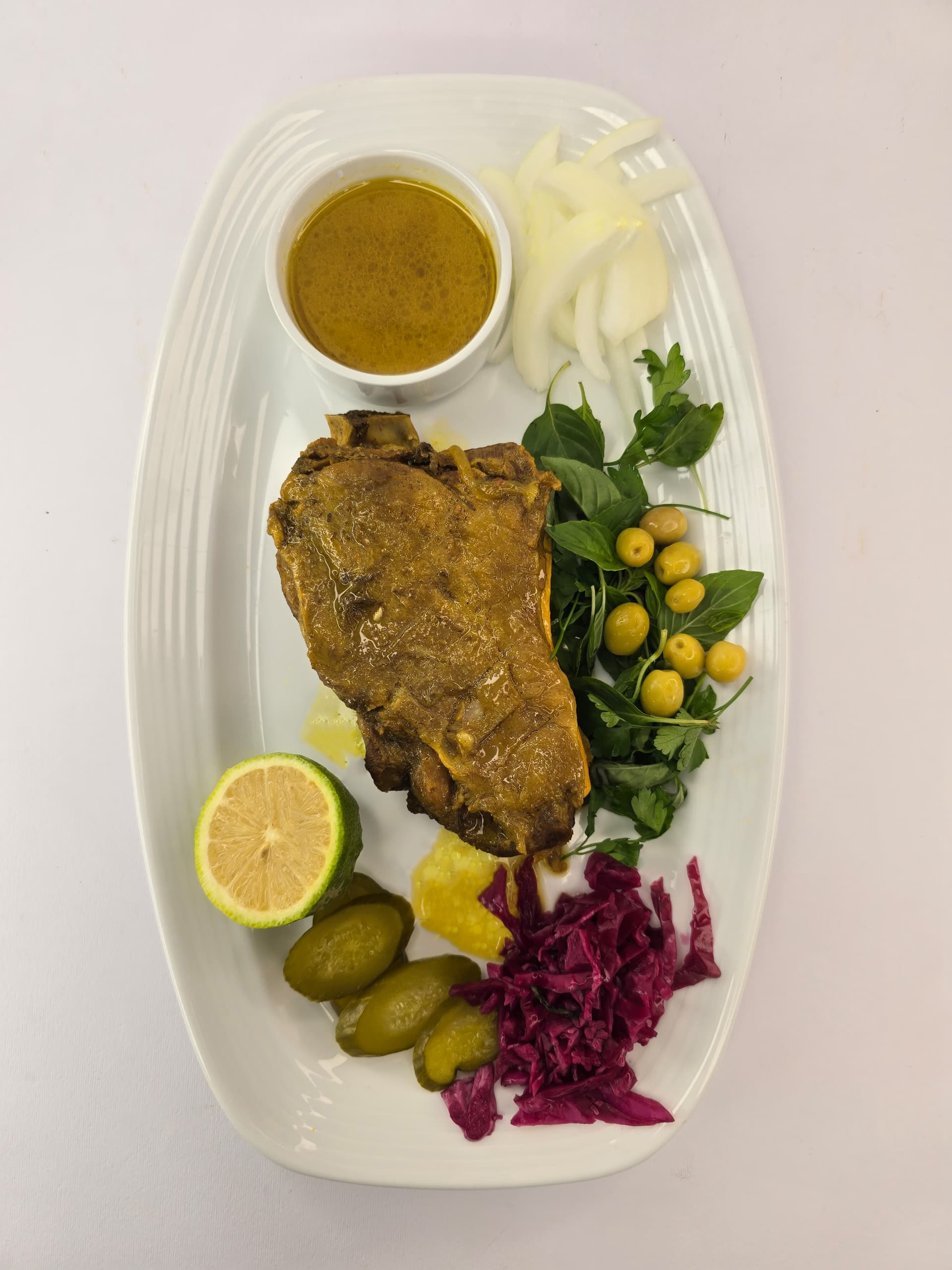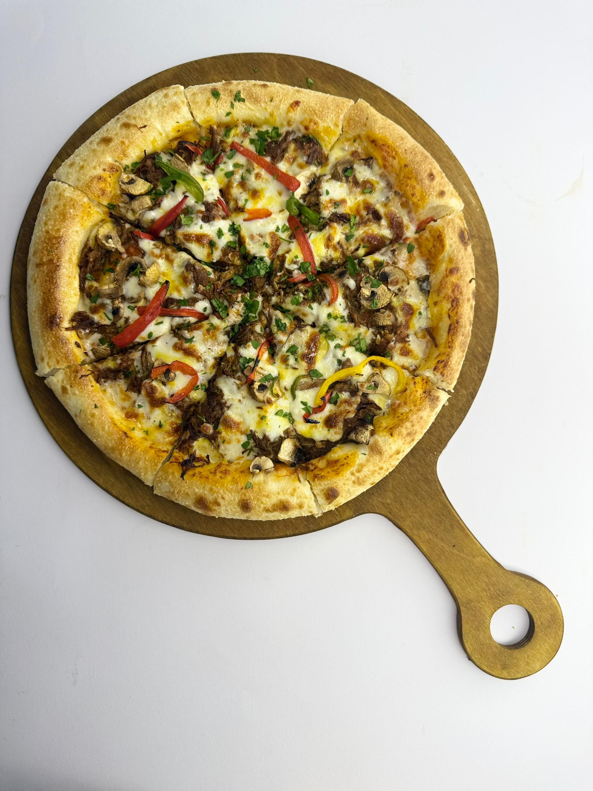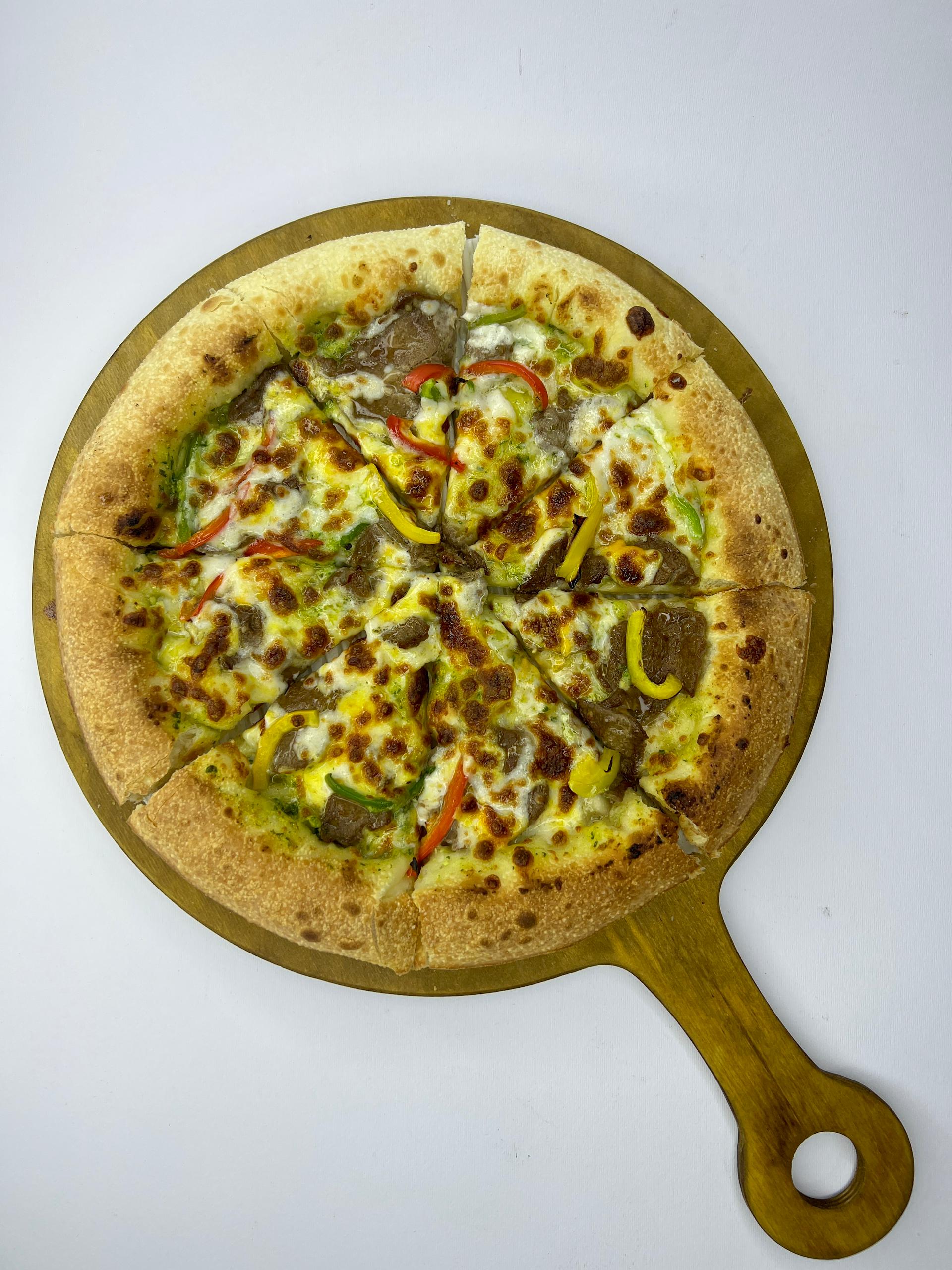 .خمیرناپولیتن.استیک گوشت.سس سیر.هالوپیتو.فلفل دلمه ای